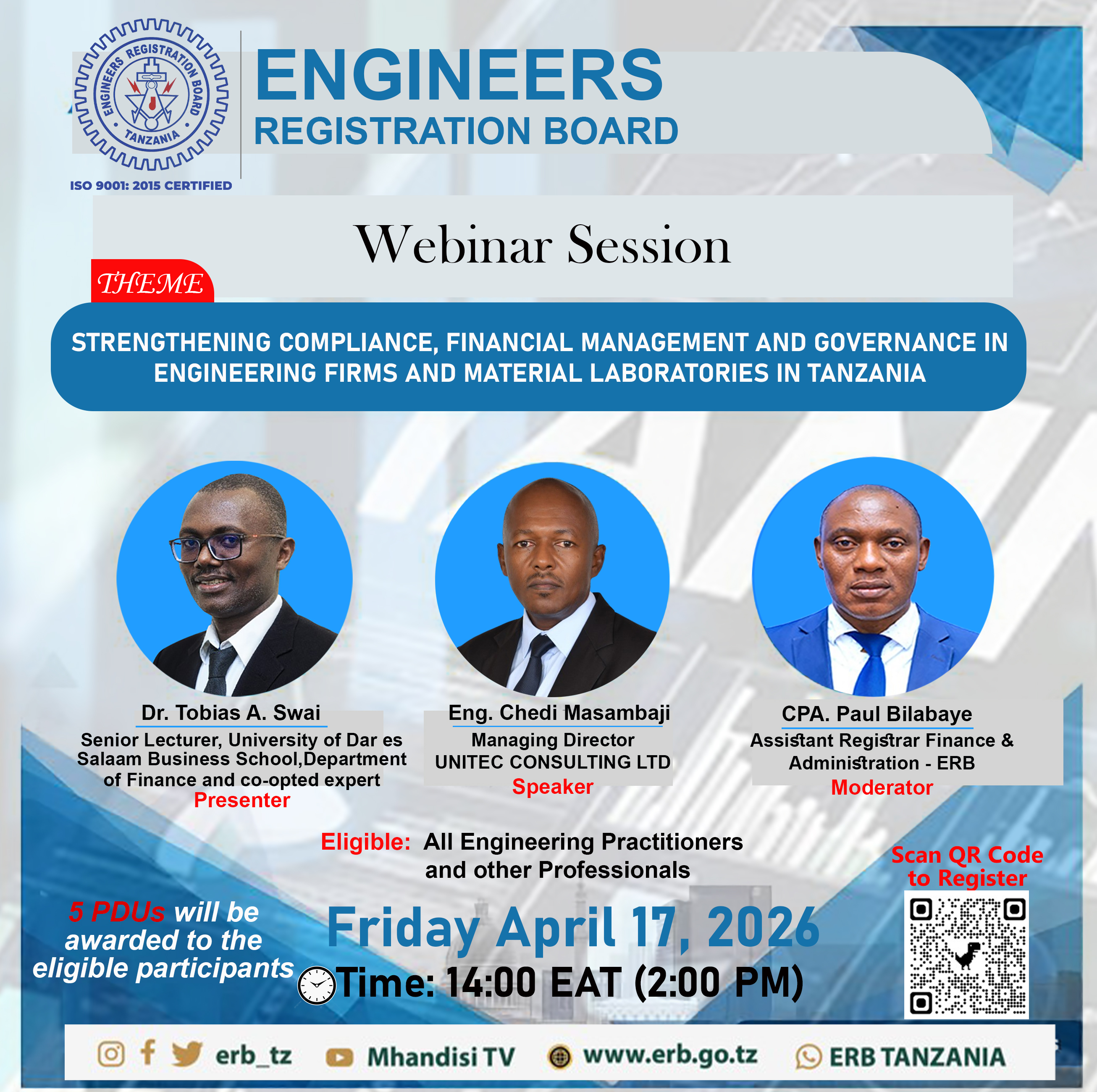 Greetings from the Engineers Registration Board (ERB) of Tanzania! As the Registrar of the ERB, I am honored to address you and highlight our commitment to promoting engineering excellence and ensuring the safety of all Tanzanians.